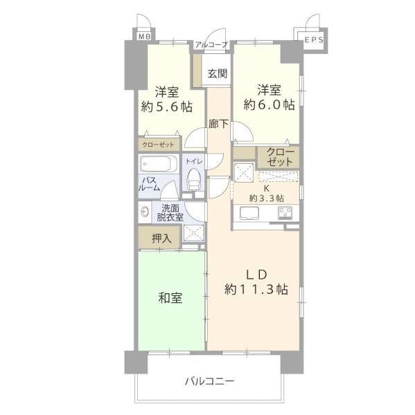 | 間取り | 3LDK | 間取り向き | 南東 (角部屋) |