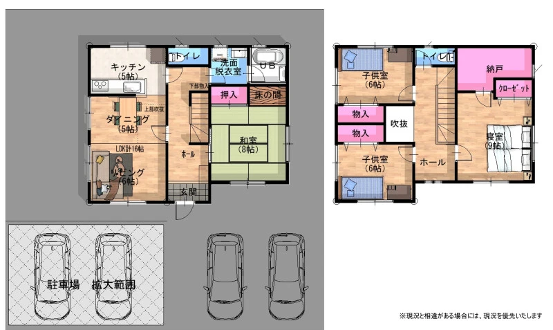 | 特徴 | 吹抜、南向き、LDK15帖以上、和室、全居室収納、全居室6帖以上、閑静な住宅街、5年以内に水回り設備交換 | ||