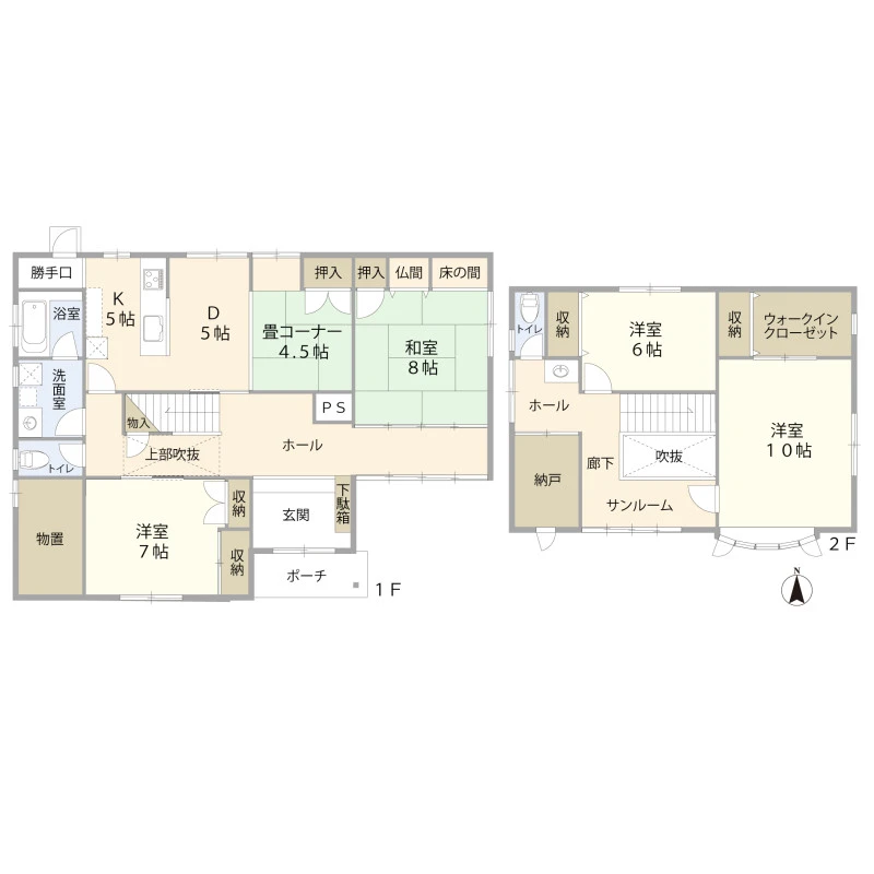 | 設備 | 上水道、下水道、室内洗濯機置場、オール電化、IHクッキングヒーター、温水洗浄便座、掘ごたつ、浄水器、電気、出窓、庭、駐車3台以上可、システムキッチン、3口以上コンロ、食器洗浄乾燥機、省エネ給湯器、バス、シャワー、バス・トイレ別、浴室1坪以上、追焚機能、浴室乾燥機、浴室に窓、浴室暖房、トイレ2箇所、洗面台、洗面所、収納スペース、ウォークインクローゼット、サンルーム、照明器具付き、南庭 | ||