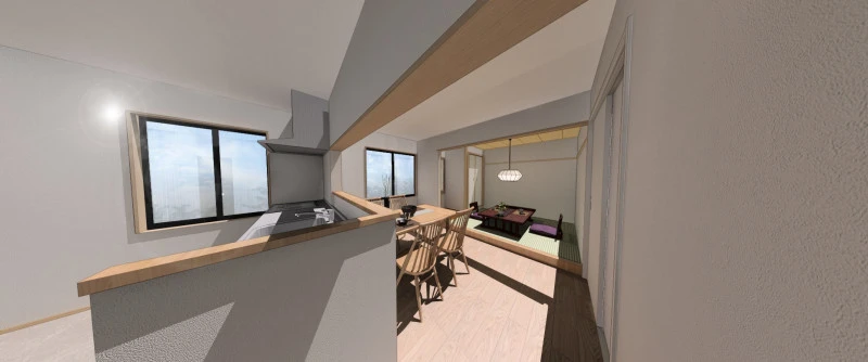 ◎キッチンから全体を見渡せる開放的なLDK