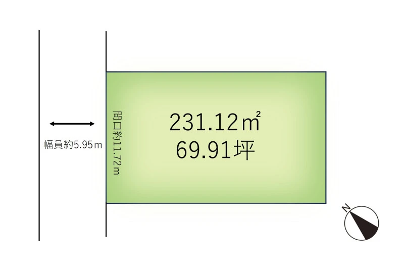 一方 北西 間口11.72m 公道 幅5.95m 位置指定無 |