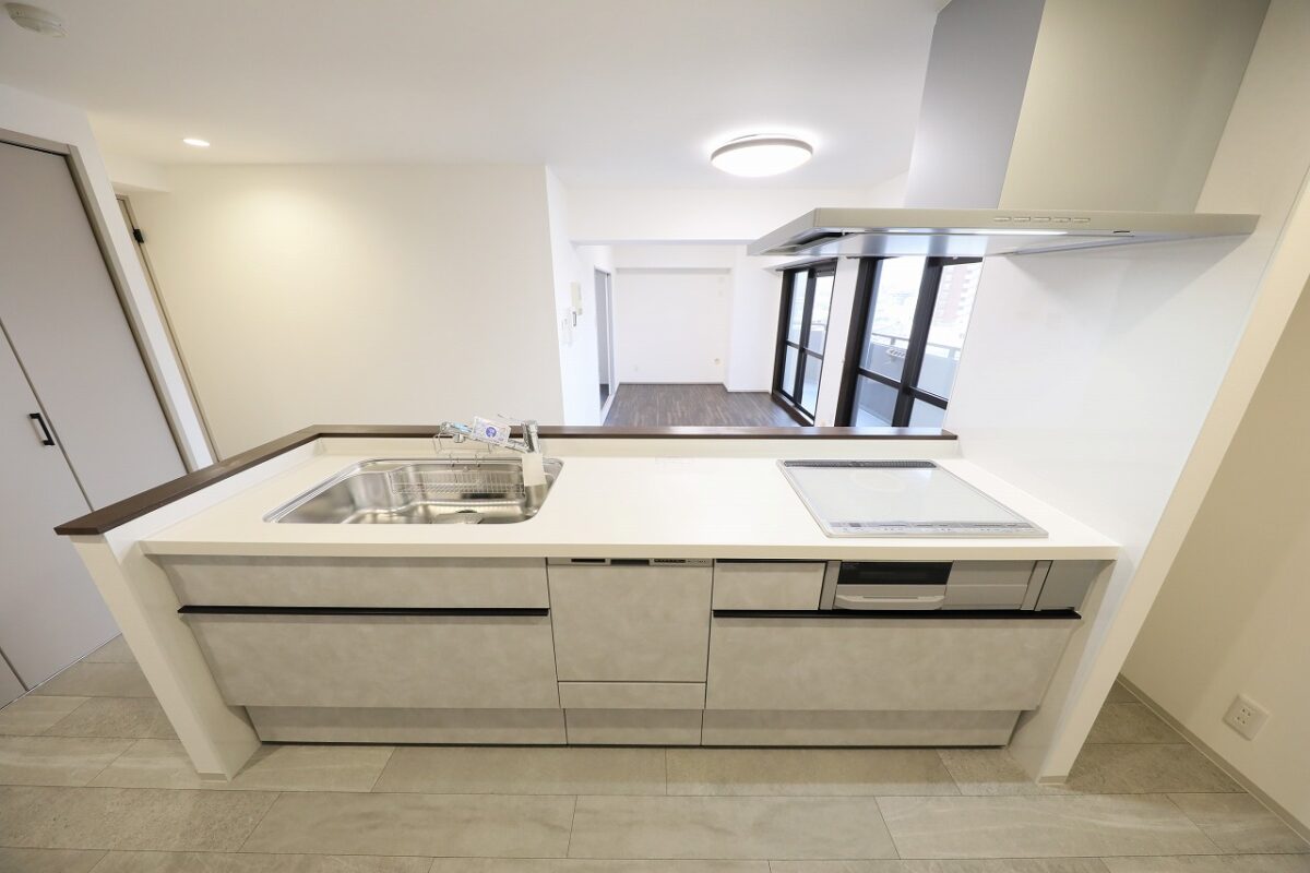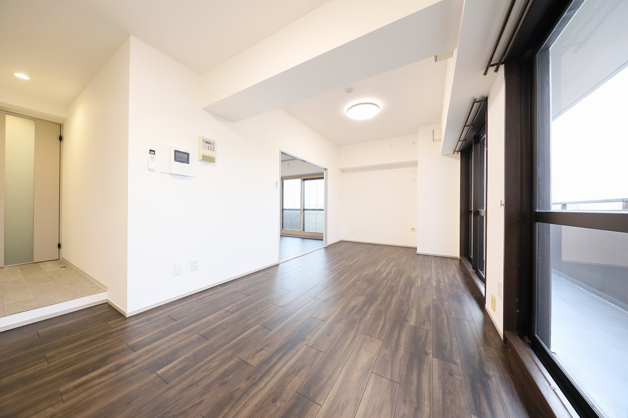 キッチンは小上がり仕様の“ステージキッチン”を採用。眺望を楽しみながら料理ができる特別な空間 間取りは2LDK、角部屋で採光・通風ともに良好。水回りはすべて新設し、 床下の給排水管から分電盤・配線までしっかり更新済み。安心して長くお住まいいただけます 大型収納やシーズン収納など、使い勝手の良さにも配慮 バルコニーからは開放的な眺望を楽しむことができ、都心でありながら穏やかな暮らしを実現します