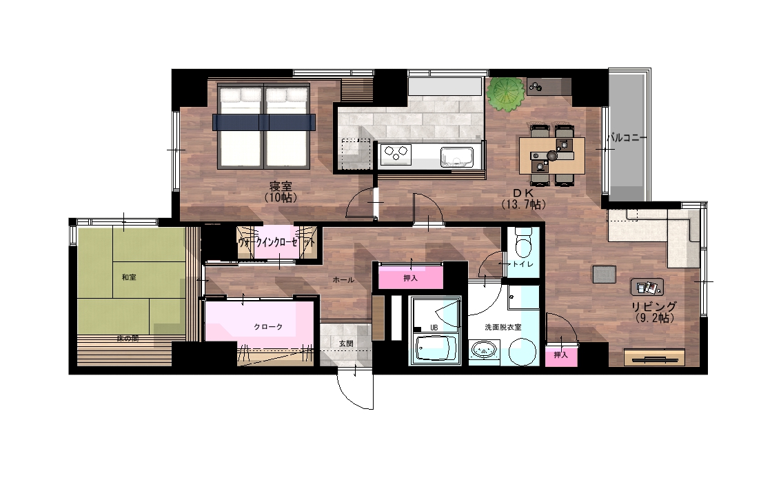 独立和室が来客時にも重宝し、急な来客にも嬉しく使いやすい間取りです。