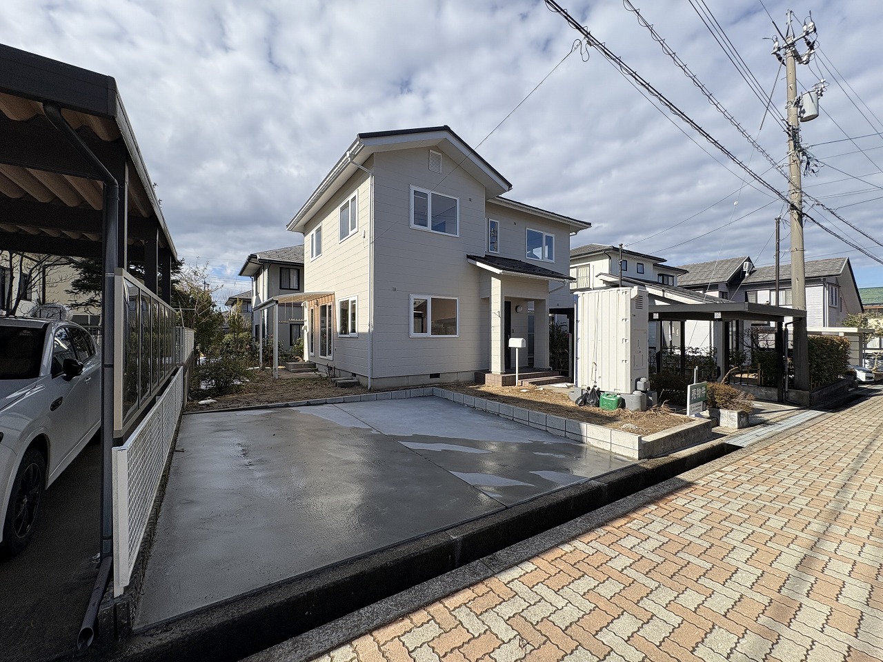 駐車場スペース増設しました。 奥には、カーポート2台分、その他に2台分のカースペースがあります。 来客用として、ご家族1人1台としても余裕があります!