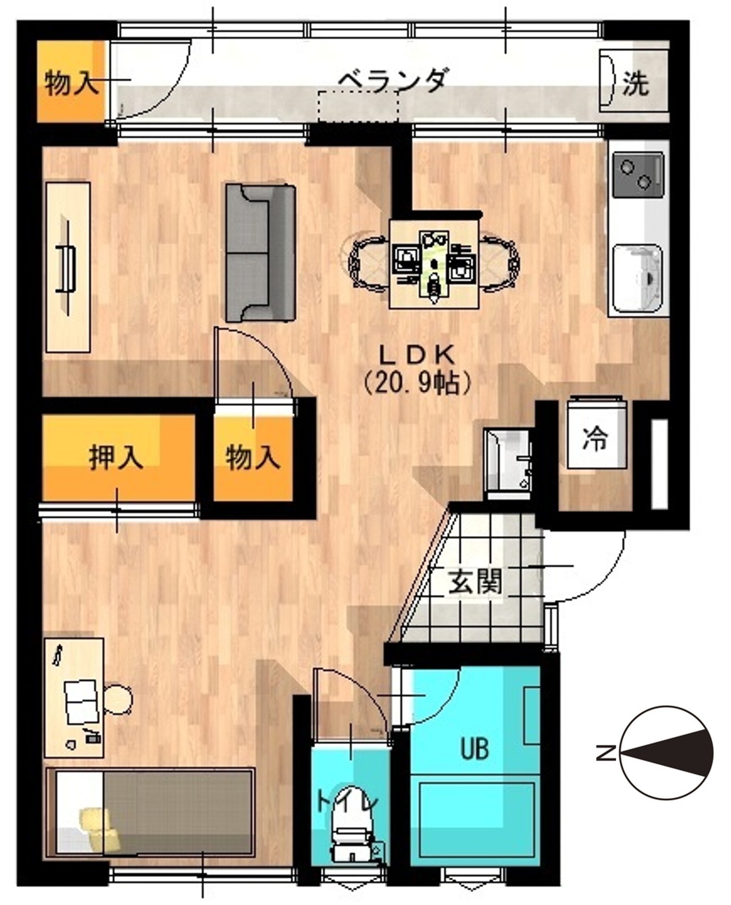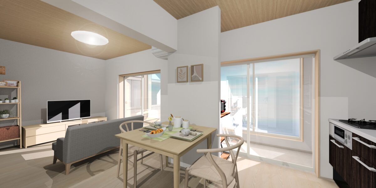 ※内観パースはイメージ画像です リビングと居室の出入りはスムーズで、 生活のしやすい間取りです ベランダからの日当たり良好です
