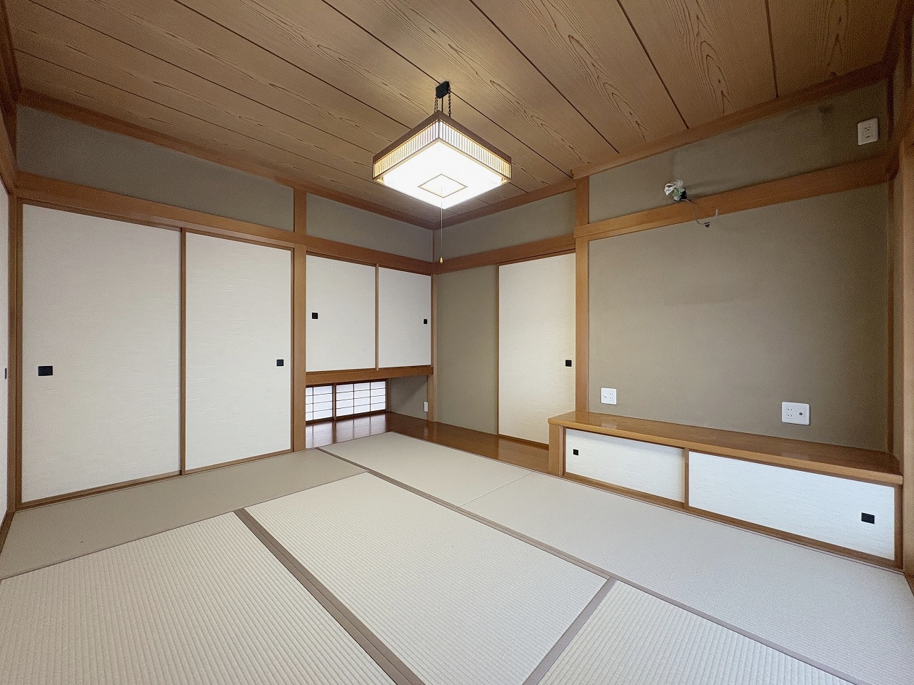 2階和室約8帖です。真壁の和室は襖、障子、畳を新規交換済みです。落ち着いた和室で来客時にも対応できます。