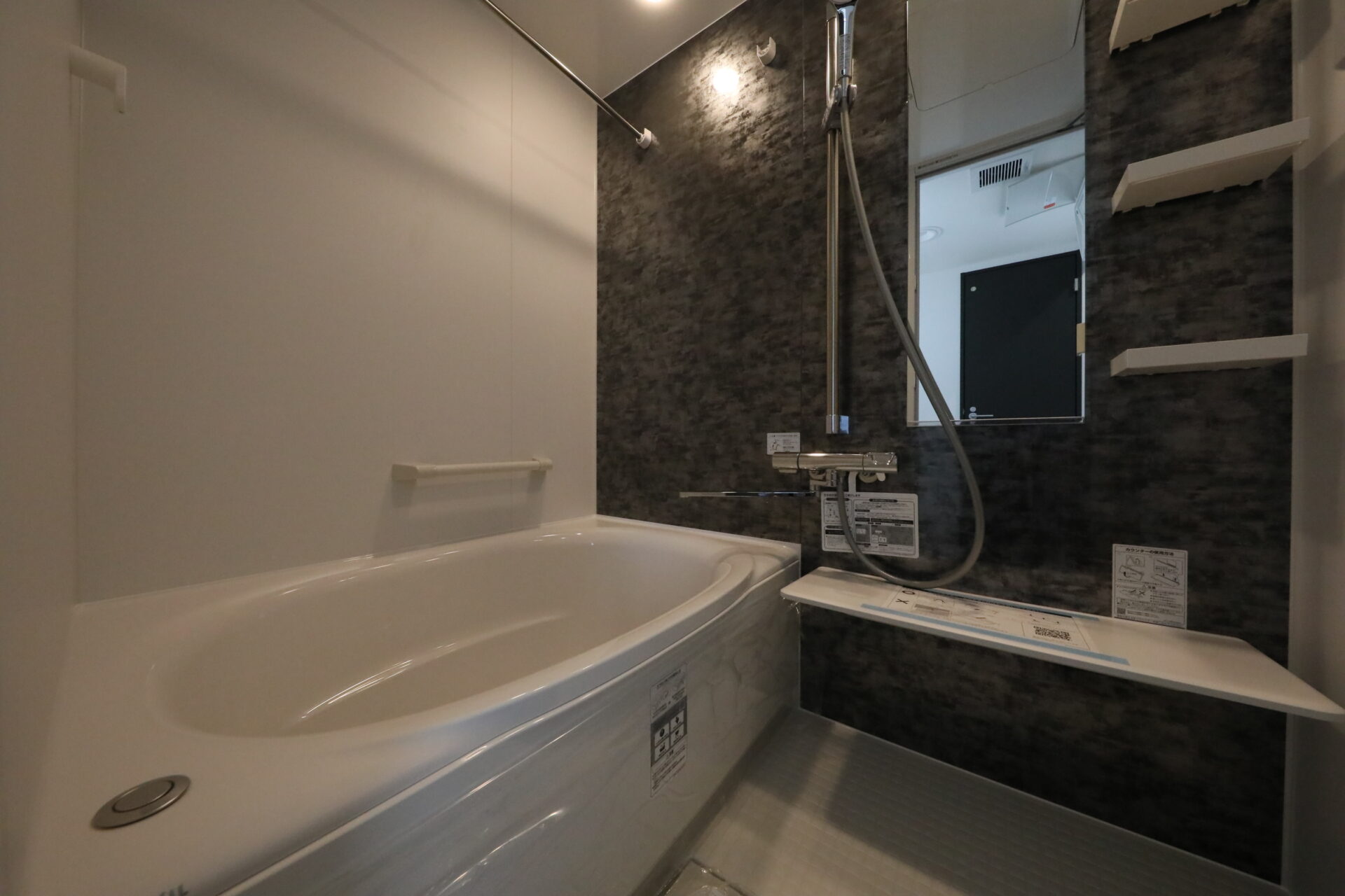 広々とした浴室でゆっくり足をのばして入れそうな浴槽です
