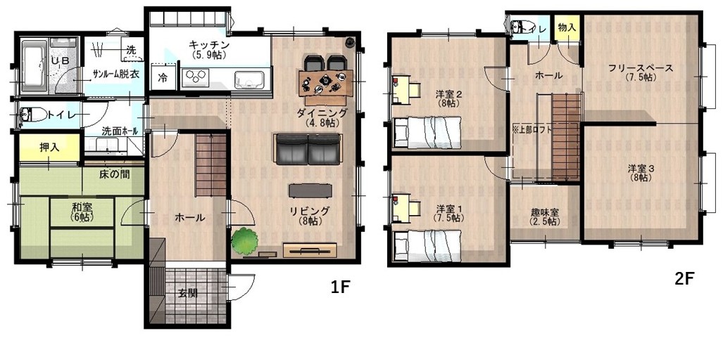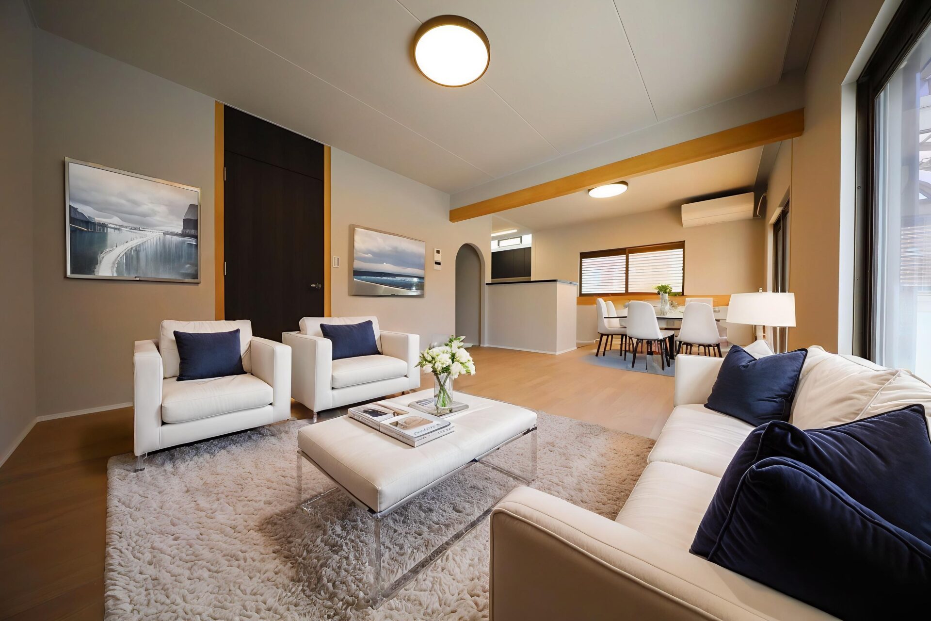 明るい窓辺が心地よい、開放感あふれるリビングダイニングです